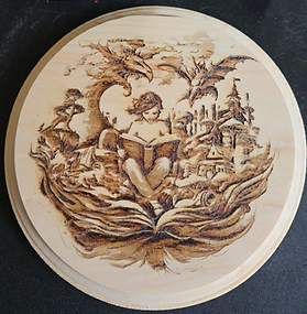 Pyrography on wood panel